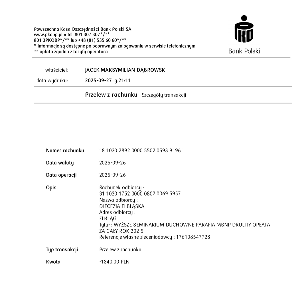 OPŁACONE ZOBOWIĄZANIA FINANSOWE PARAFII w roku 2025
